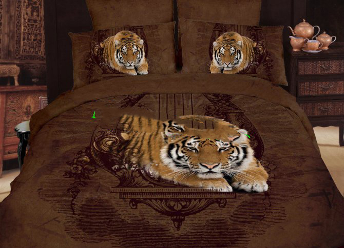 100% Cotton Luxury 4PCS Oil Painting Tiger King Bed Duvet Comforter Bedding Set |
