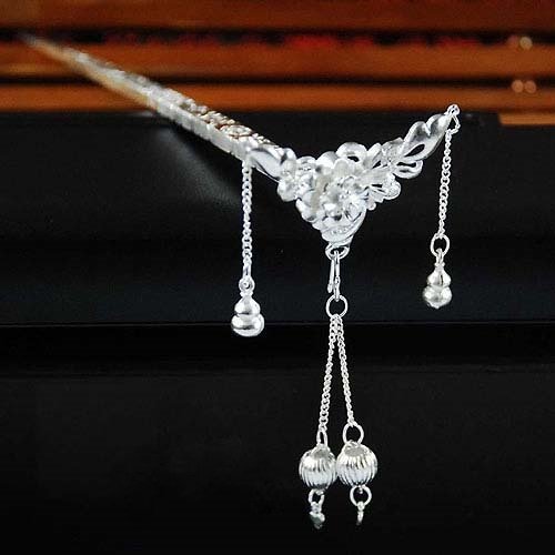 100% Hand Carve 999 Silver Hair Pin Stick Jewelry |