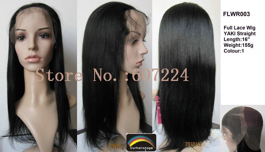 100% Indian Remy Hair Full Lace Wig 16" Yaki Straight 1# Free Shipping |