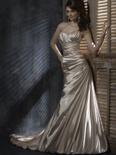 Anti-Static Dry Cleaning Floor-Length Embroidered Sleeveless 100% Silk Watteau Train Wedding Dresses |