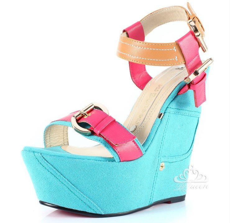 Belt Metal Buttonm Spell Color High Slope Female Sandals |