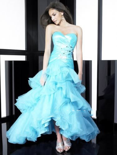 Blue A-line Chiffon Strapless Sexy Ruffle Bridal Dress |