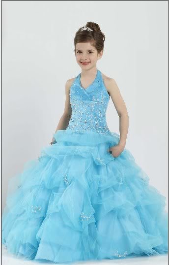 Blue Beading Ruffle Organza Halter Flower Girl Dresses |