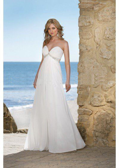 Chiffon Empire Sexy Deep Neckline A line Chapel Train Beach Wedding Dress |