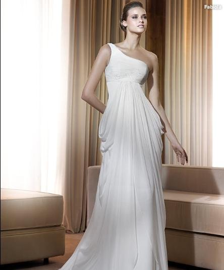 Chiffon One Shoulder Halter Draped Dropped Ankle-length High Waist Wedding Dress |