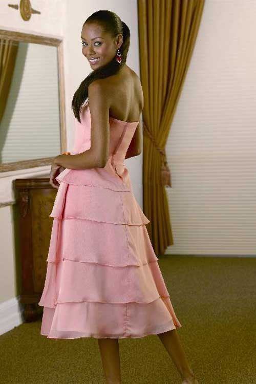 Chiffon Strapless Layered Zipper Tea-Length Wedding Dresses |