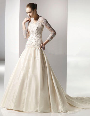 Classic & Timeless Floor-length Long Sleeve with Lace Embroidery Trumpet A-Line Wedding Dresses |