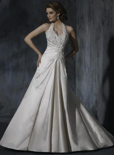 Concinnity Wrinkle Design Style Silk White Halter Girdle Wedding Dress |