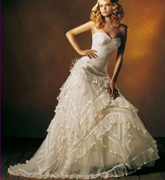 Cotton Custom Made Floor Length Strapless Ball Gown Wedding Dresses |