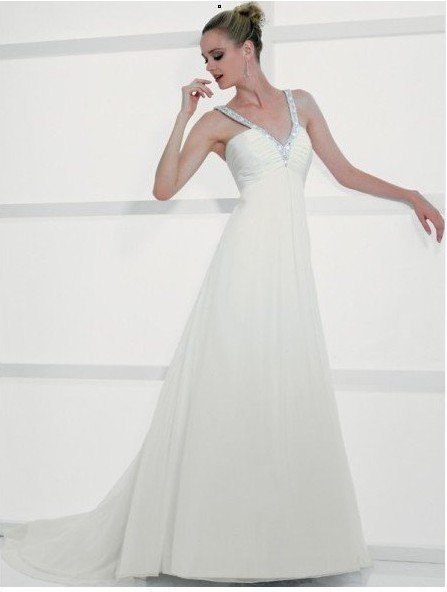 Crystal Sleeveless V-neck Ankle-Length Lace Sweep Train Wedding Dresses |