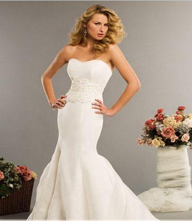 Fabric Strapless Beaded Zipper Mermaid Train Princess Wedding Dresses |