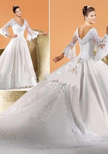 Floor-Length Beaded Lace Sleeve Cathedral Train Wedding Dresses |