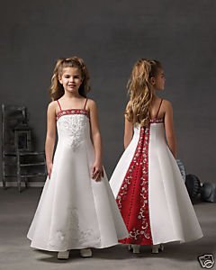 Flower Embroidery Beads Spaghetti Straps Satin Girl Dress |