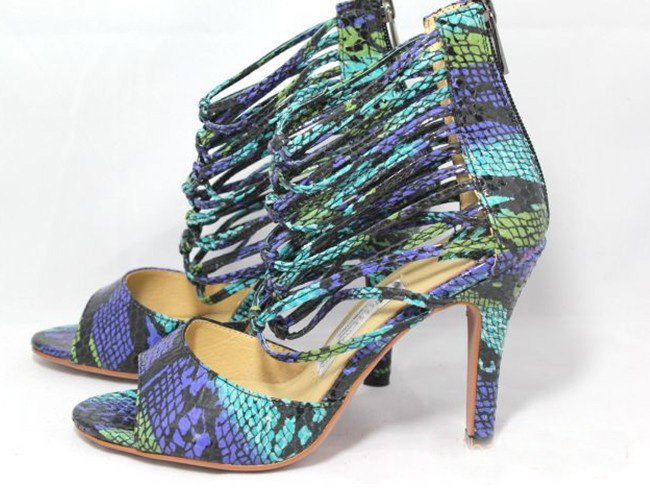 High-heeled Green Snakewood Bandage Sandals |