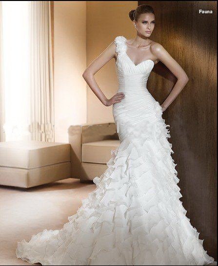 One Shoulder Floor-length Gorgeous Ruffle Bridal Dress |