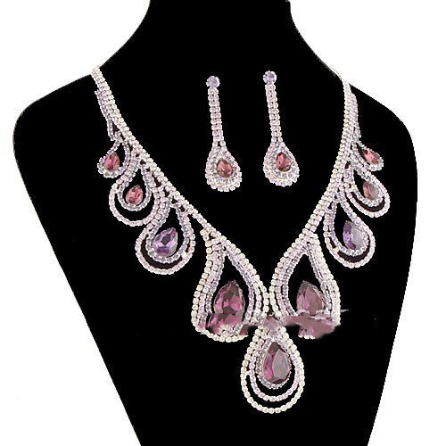 Item Type: Jewelry Sets Place of Origin: Guangdong China (Mainland) Fine or Fashion: Fashion Included Additional Item Description: a pair of earring and necklace Main Stone: Zircon Fashion Jewelry Material: Gemstone Gender: Women Metals Type: Platinum Plated Birthstones: May Occasion: Party Jewelry Sets Type: Necklace/Earrings red: white pink: sliver