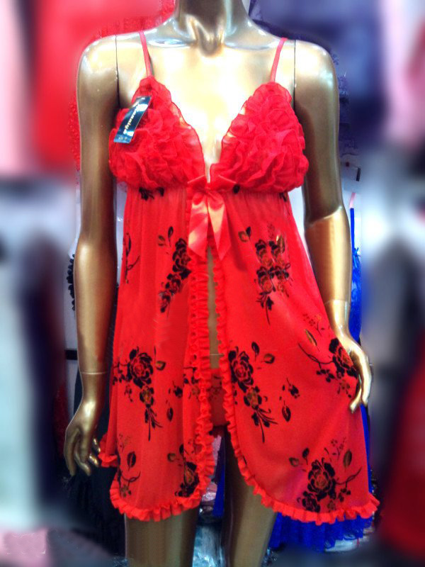 Red Spaghetti Straps With Flowers On Lingerie |