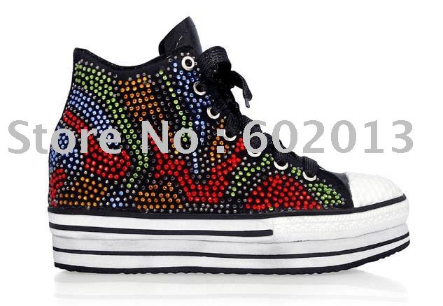 Place of Origin: Guangdong China (Mainland) Lining Material: Genuine Leather Season: Spring,Summer,Autumn,Winter Gender: Women Outsole Material: Rubber Upper Material: Genuine Leather Model Number: 110529-6 Item Type: Flats Department Name: Adult Closure Type: inner increasing shoes style: newest high heels shoes material: sheep skin feature: platform,sequin, color: gold,colorful pictures: 100% fancylook heels: 8cm europe size: from 35 to 38 platform: 4cm