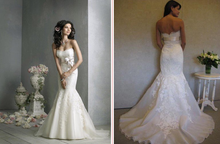 Satin Cotton Strapless Emboridery Bowknot Sash Mermaid Train Asymmetrical Wedding Dresses |