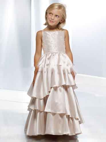 Satin Spaghetti Strap Emboridery Zipper Layered A-line Ankle-length Flower Girl Dresses |