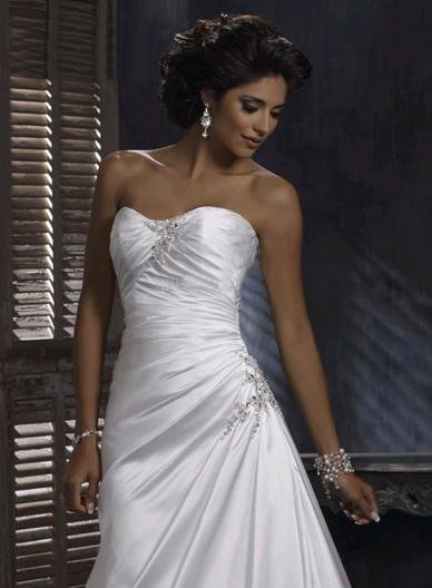 Satin Strapless Beaded Pleats Ruching Slim-line Elegant Asymmetrical Wedding Dresses |