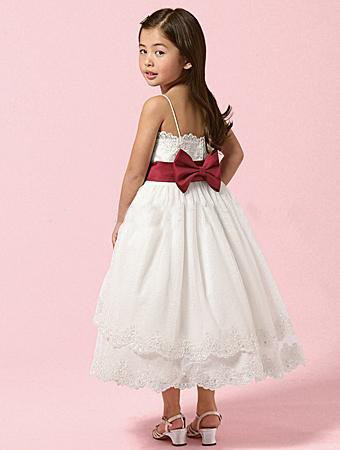 Satin Tea Length Spaghetti Straps Girls' Dresses |