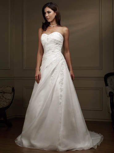 Sexy Strapless A-Line Sleeveless Applique Satin Cathedral Train Wedding Dresses |