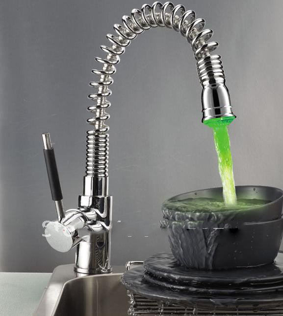| Product Description | Single Handle Chrome Centerset LED Pull-out Kitchen Faucet with Hot and Cold Water Switch Function |