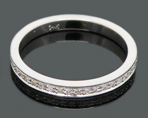 Solid 14kt White Gold Full Pave Diamond Wedding Band Ring |