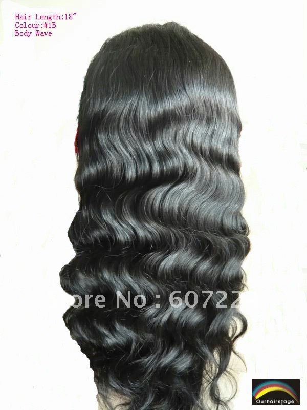 100% Indian REMY Hair Lace Front Wig 18" BODY WAVE 1B Free Shipping