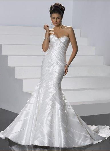 Strapless Beaded Plicate Floor-Length Court Train Mermaid Wedding Dresses |