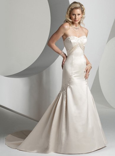 Strapless Beaded Plicate Lace-Up Floor-Length Chapel Train Wedding Dresses |