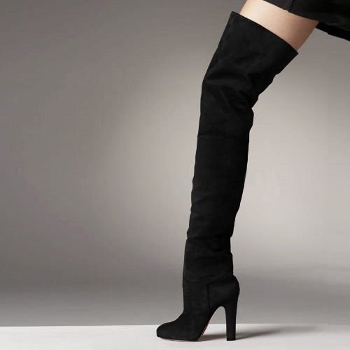 Suede Black Sexy Women's Knee High Boots |