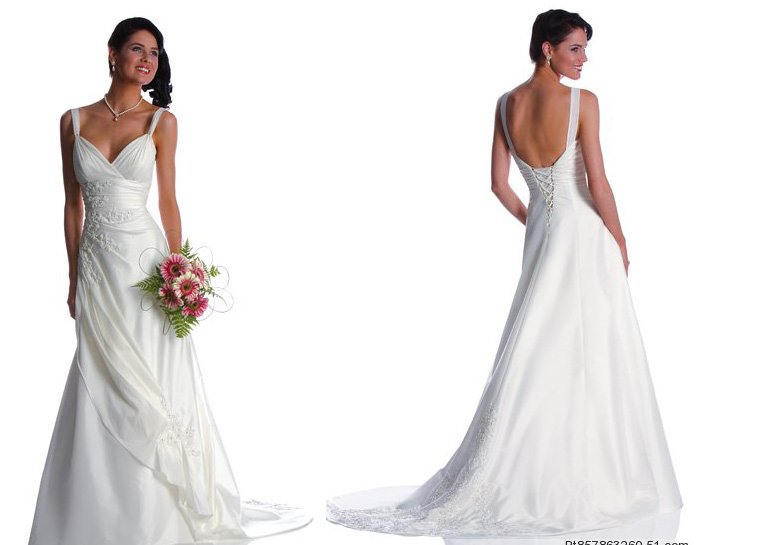 V-neck Straps Embroidery Floor-Length Mermaid Wedding Dresses |