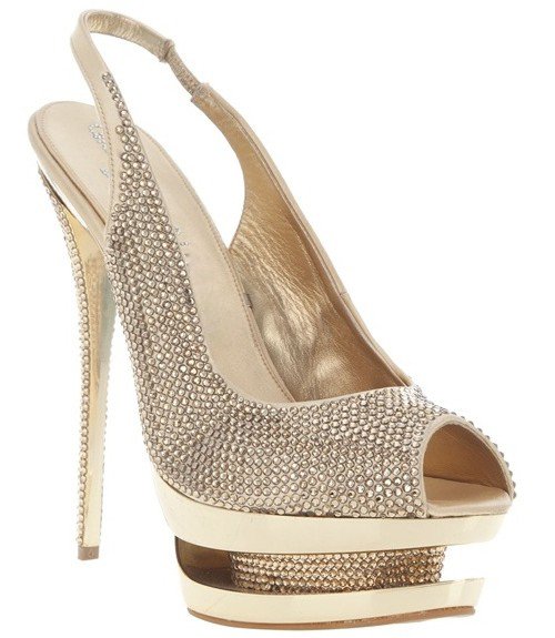 Women's Rhinestone Sling Back Platform Gold Sandals |