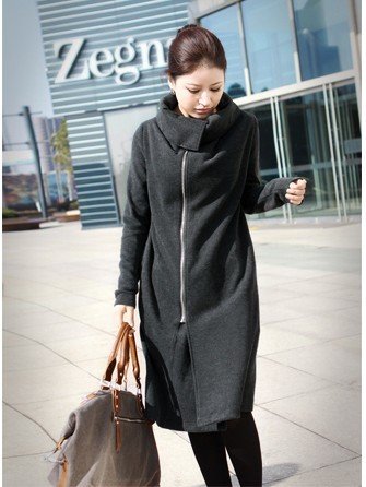 Woolen Can Turndown Collar Zipper Long Type Ladies' Blouses & Tops |