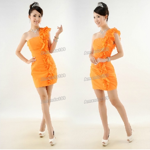 Yellow Short One Shoulder Laciness Bridesmaid Dresses |